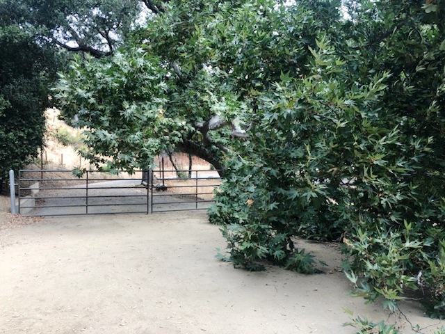 A few months ago a crack developed in one of the large main trunks of a sycamore tree located near the emergency exit to Highway 41 from the trailhead at Three Bridges Oak Preserve. Due to the crack this main trunk and associated branches sagged down and hung over the gate and blocked the exit.