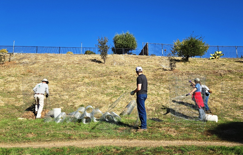 The Alondra Planting Site is located on Alondra Road on the back side of the Las Lomas housing development. The oak trees were planted as partial mitigation for the hundreds of oak trees that were cut down to make room for the development.