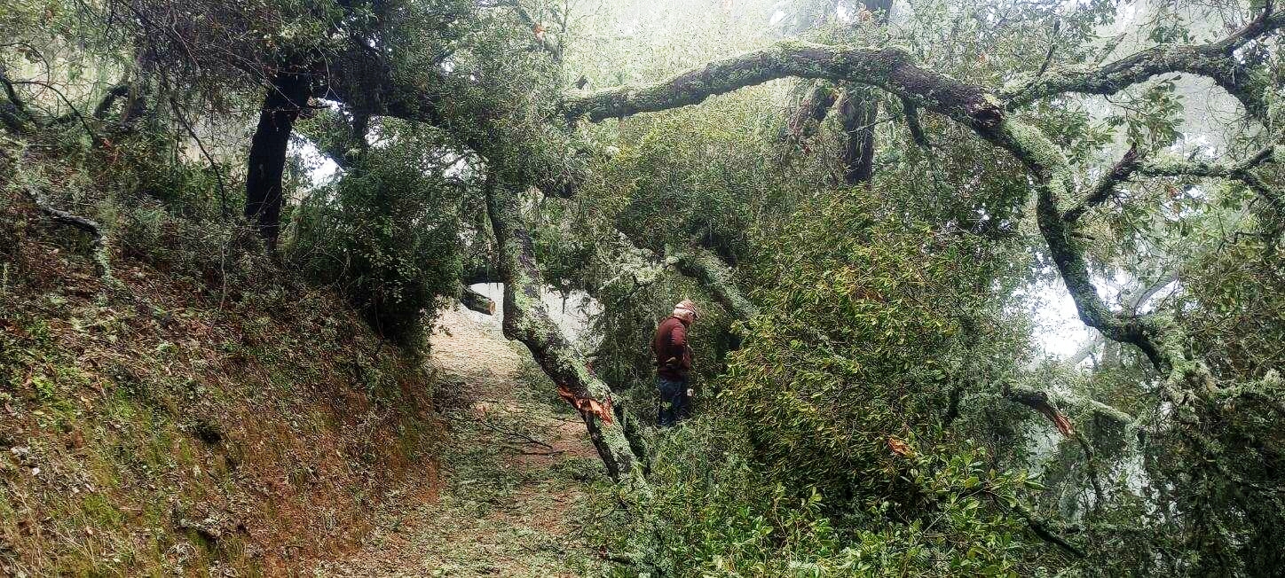 After some of the big rains during the first few days of January, a large Live Oak tree fell across the Oak Woodland Loop Trail just below the upper junction.